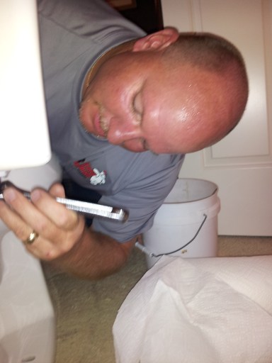 back to the office. I guess I truly am a control freak. I need to be doing something all of the time. So what does a plumber’s helper do? Well, I was a gofer. Go get the caulk, go get the silicone, go get some shims, unbox the toilet and take it upstairs. Ok!!! Stop right there. I will take the tank and the lid, but you are going to have to take the toilet. Could I have taken it up stairs, sure I could have but at what cost? I might have dropped it, (not likely), I might have hit the wall or the stair rail (more likely).