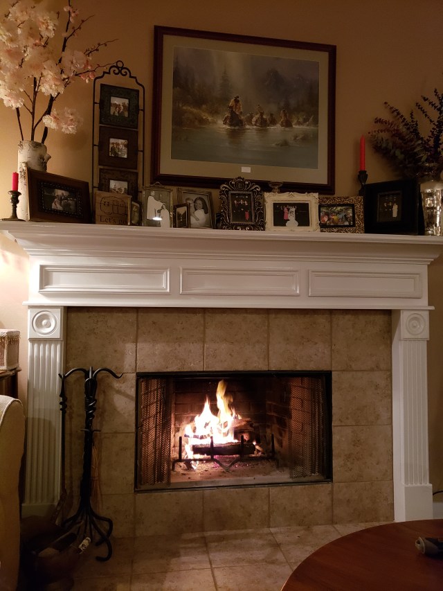 I love the sound and smells of a burning fire in the fireplace. I remember growing up we had a wood burning fireplace that my dad had gas piped in but never connected. Years later with mom we would struggle to get the fire started using crumpled newspaper.